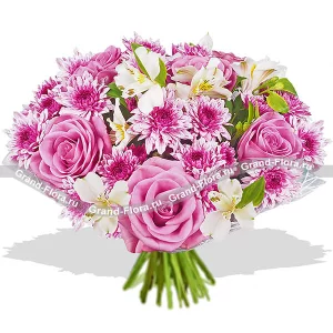 С любовью и нежностью - букет из кустовых хризантем, роз и альстромерийот 4 189 руб. 5 727 руб.Купить