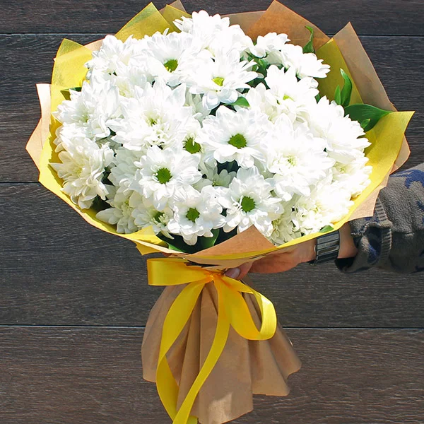 Спасибо, искала ромашки, но ромашки видимо сложно найти в это тяжелое время. ))). Но этот букет ничем не уступает в ромашкости ))). Очень высокие хризантемы почти 1 метр. Огромный букет, если будите заказывать 21 ветку. Однозначно рекомендую.