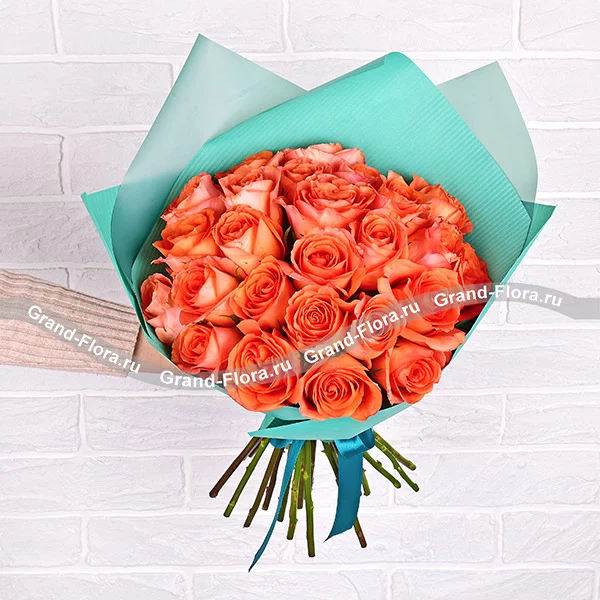 Внимание: сорт роз может отличаться от сорта на картинке, оттенок допустим от ярко-оранжевого (сорт Нина) до светло-оранжево-желтого