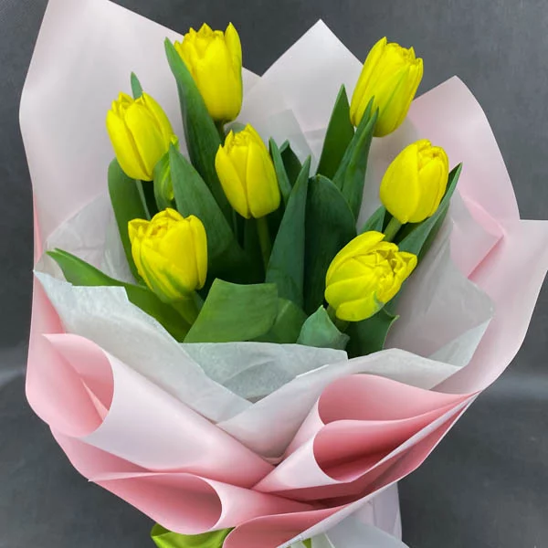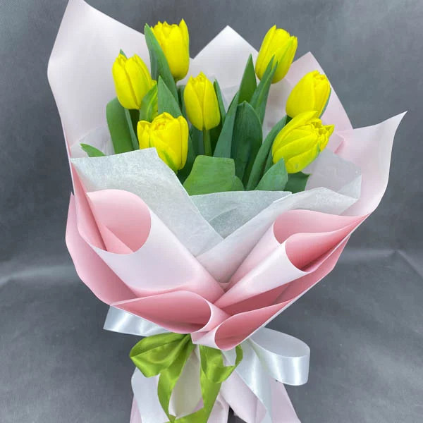 7 тюльпанов: тюльпаны желтые - 7 шт., упаковка, бант.