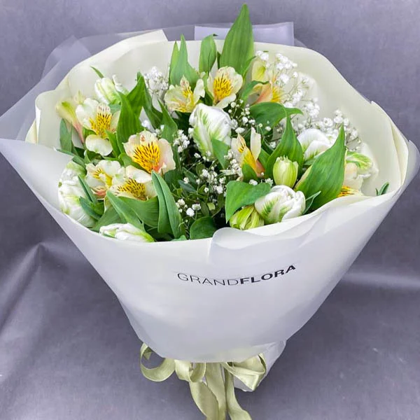 Светлана / г. Иваново г. / 10.08.2023Оценка букета:Букет был доставлен во время и упакован очень аккуратно. Я была очень довольна его внешним видом, белые альстромерии создали чистый и элегантный образ. Я обязательно буду заказывать в этой компании цветы снова.
